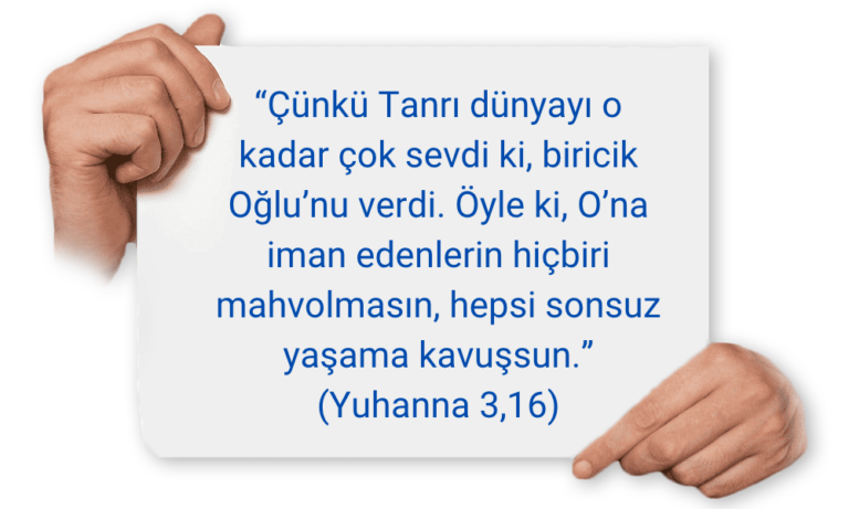 “Çünkü herkes günah işledi ve Tanrı’nın yüceliğinden yoksun kaldı. İnsanlar İsa Mesih’te olan kurtuluşla, Tanrı’nın lütfuyla, karşılıksız olarak aklanırlar. ” (Romalılar 3, 23-24)